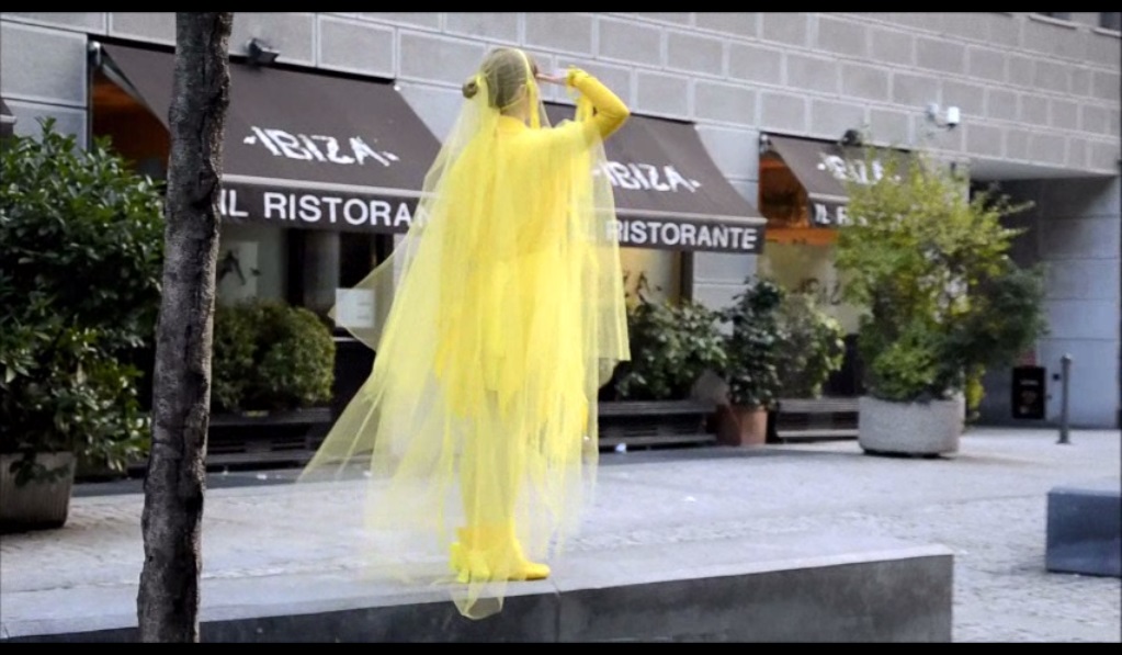Il Giallo è presente: si espande, irradia, gioisce, a volte stride ma si dona e rimane nello sguardo di chi lo riceve. Oltrepassa sempre i limiti, non tollera le barriere, è pura luce del sole e promessa di fortuna ed eternità. Per un giorno sono diventata il Giallo, e ho donato alla gente un sorriso e il suono di un campanellino.
